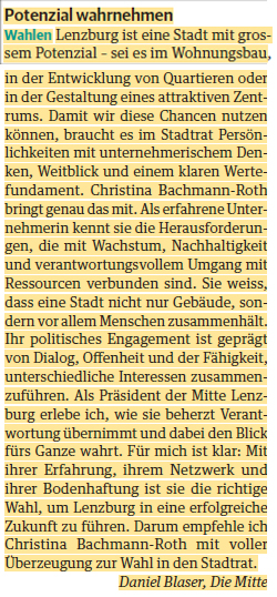 Blaser Daniel – Unternehmer, Einwohnerrat Die Mitte Lenzburg