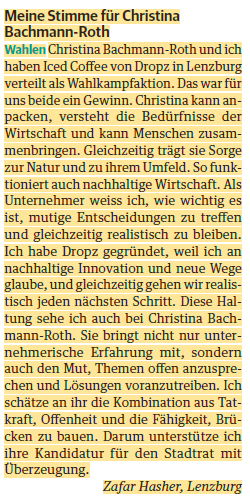 Hunziker Oliver – Unternehmer, Die Mitte Lenzburg